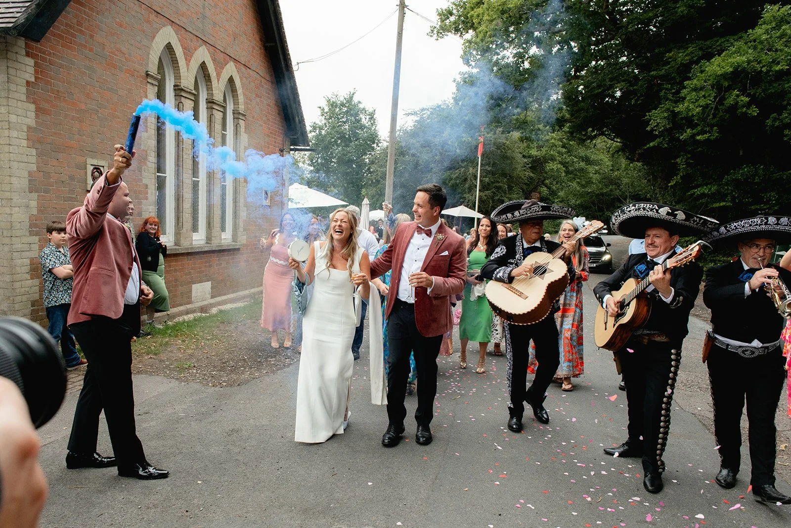 Kent church wedding, with a fun village hall reception + Mariachi band parade